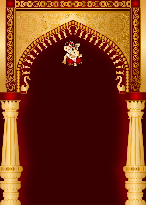 Your guests will definitely notice the exquisite Brown patterns adorning the golden arch. The Hindu god of beginnings Ganesha’s statue is a lovely and lucky addition to the invitation. The luxurious and elegant atmosphere is accentuated by the golden swirl background.
