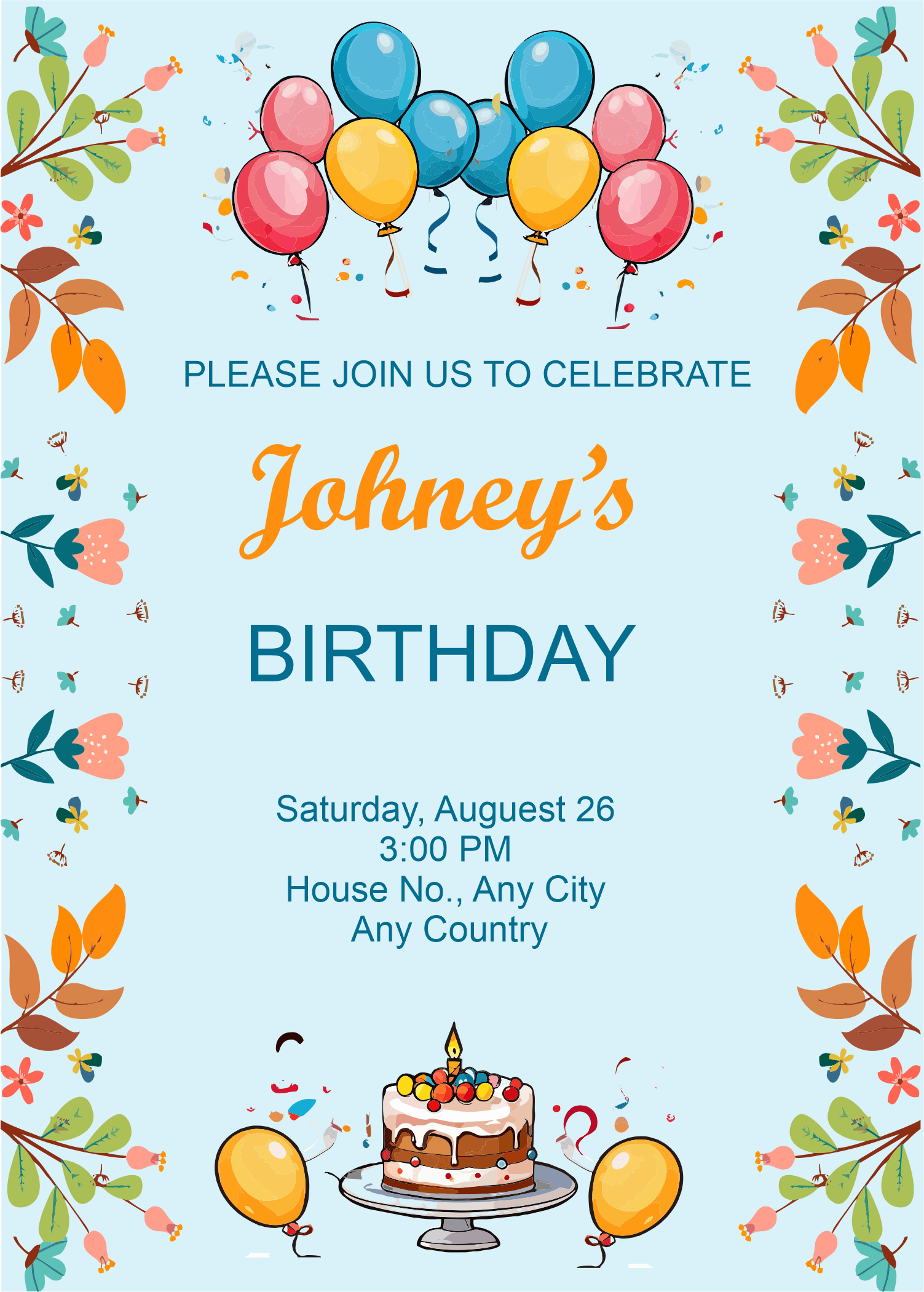 No birthday party is complete without balloons, cake, and floral decorations! Our invitations feature these festive elements, and you can customize them to match your party theme. Choose from a variety of colors, styles, and designs to create the perfect invitation for your special day.