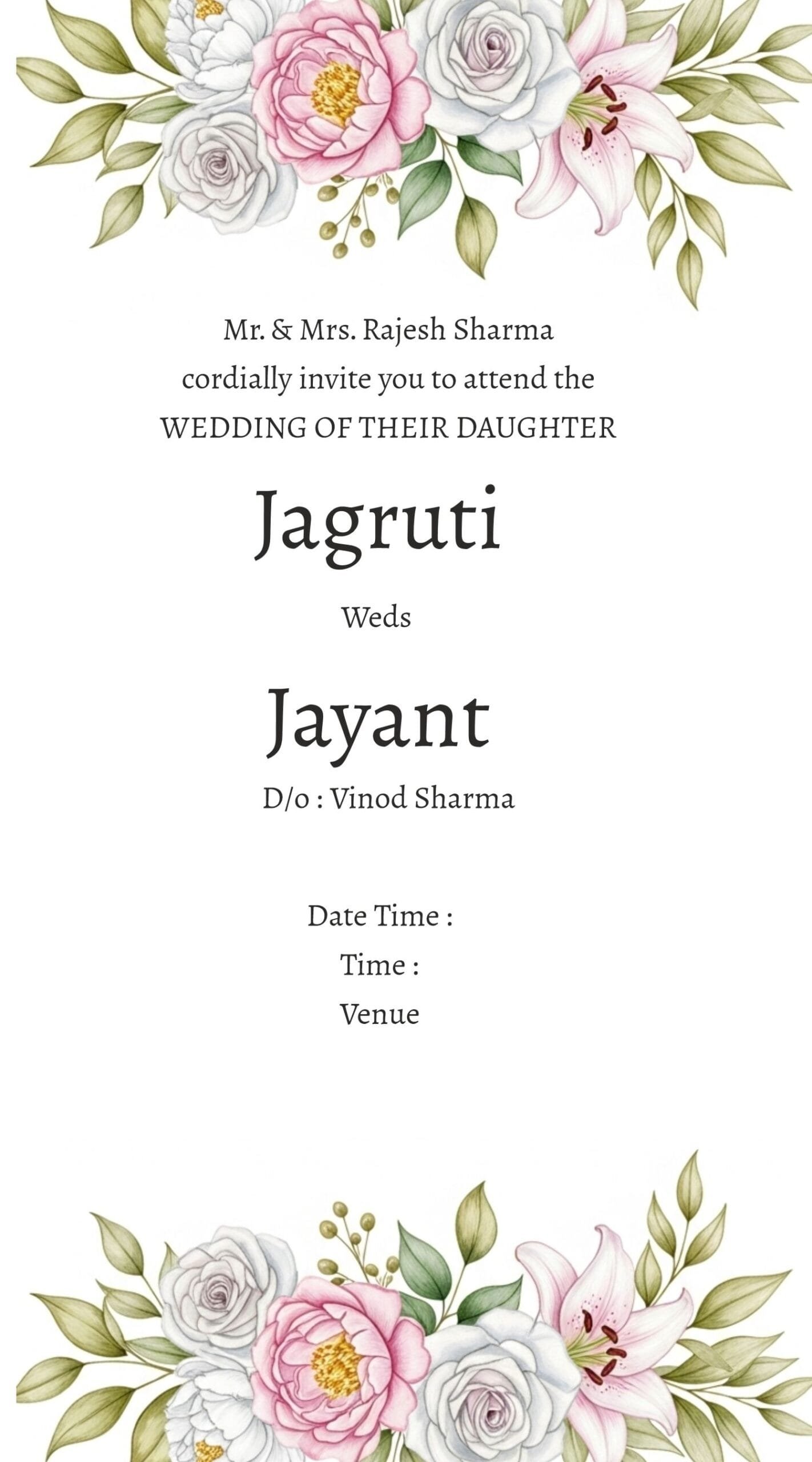 Our template offers the ultimate convenience with its online editable feature. You can personalize every detail of your wedding invitation to match your theme and style effortlessly. Whether it’s the names, date, or venue, simply click, edit, and share. This ease of customization is perfect for couples who wish to create unique invitations without the need for graphic design expertise.
