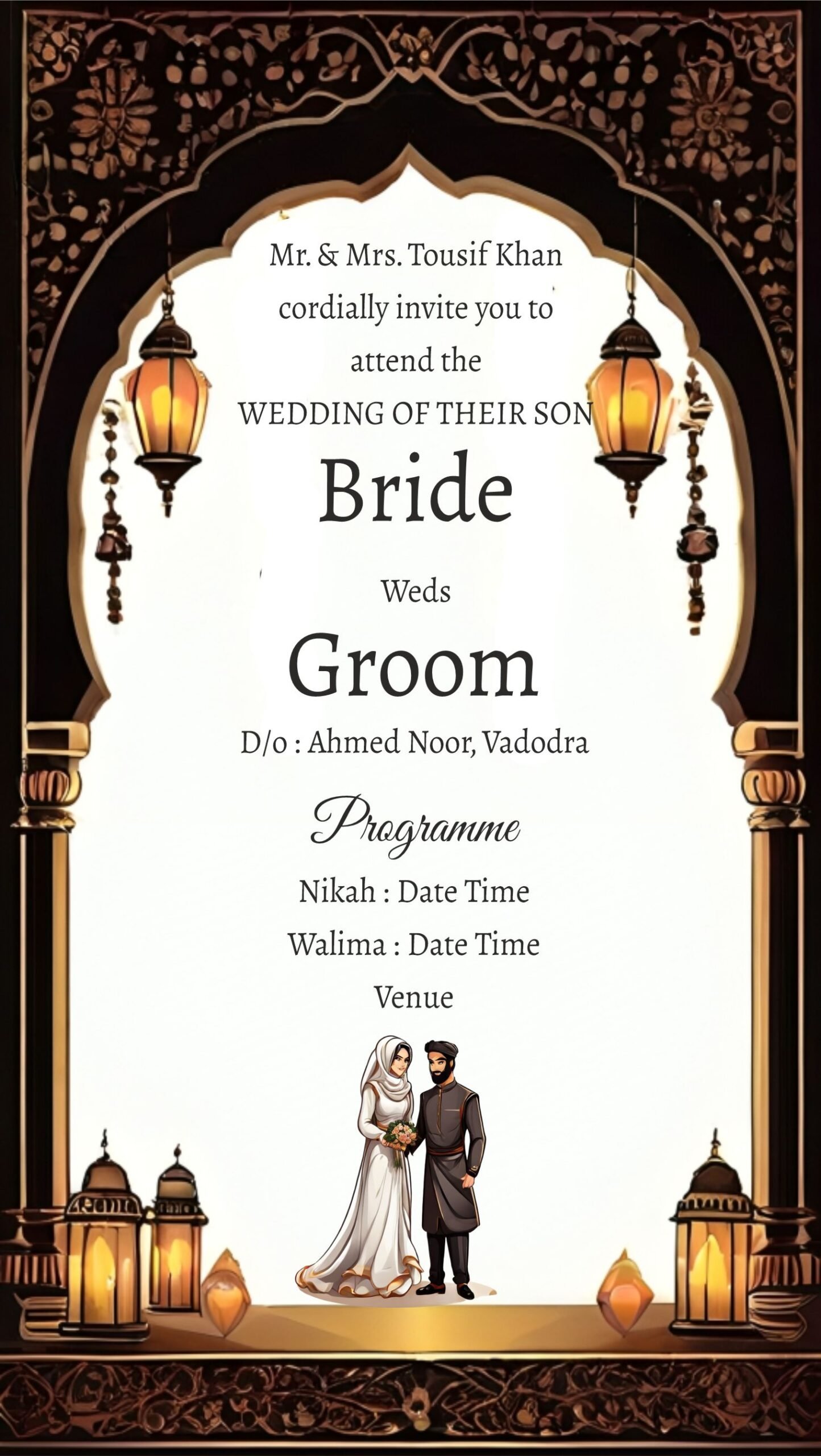The brown arch design is a modern and stylish choice for your digital Muslim wedding invitation card. It offers a touch of elegance that perfectly complements the significance of your special day.