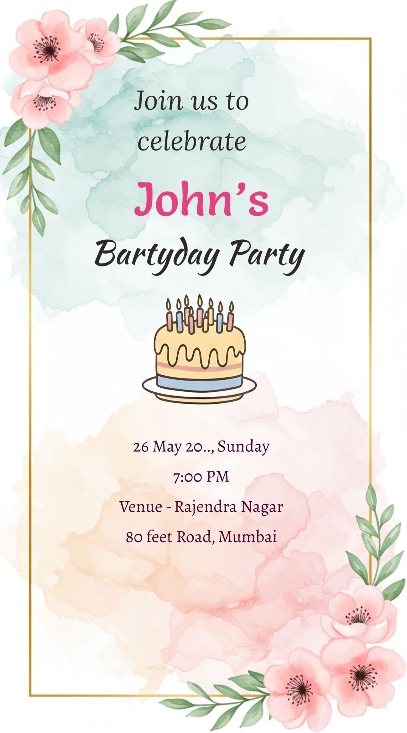 Once you’re satisfied with your design, simply download the invitation for free! Enjoy the ease of digital sharing via email or social media, or print it out for traditional mailing. This Birthday Party Invitation for elder people is not only customizable and editable but also accessible at no cost, allowing you to focus on what truly matters: celebrating a memorable birthday with those you cherish.