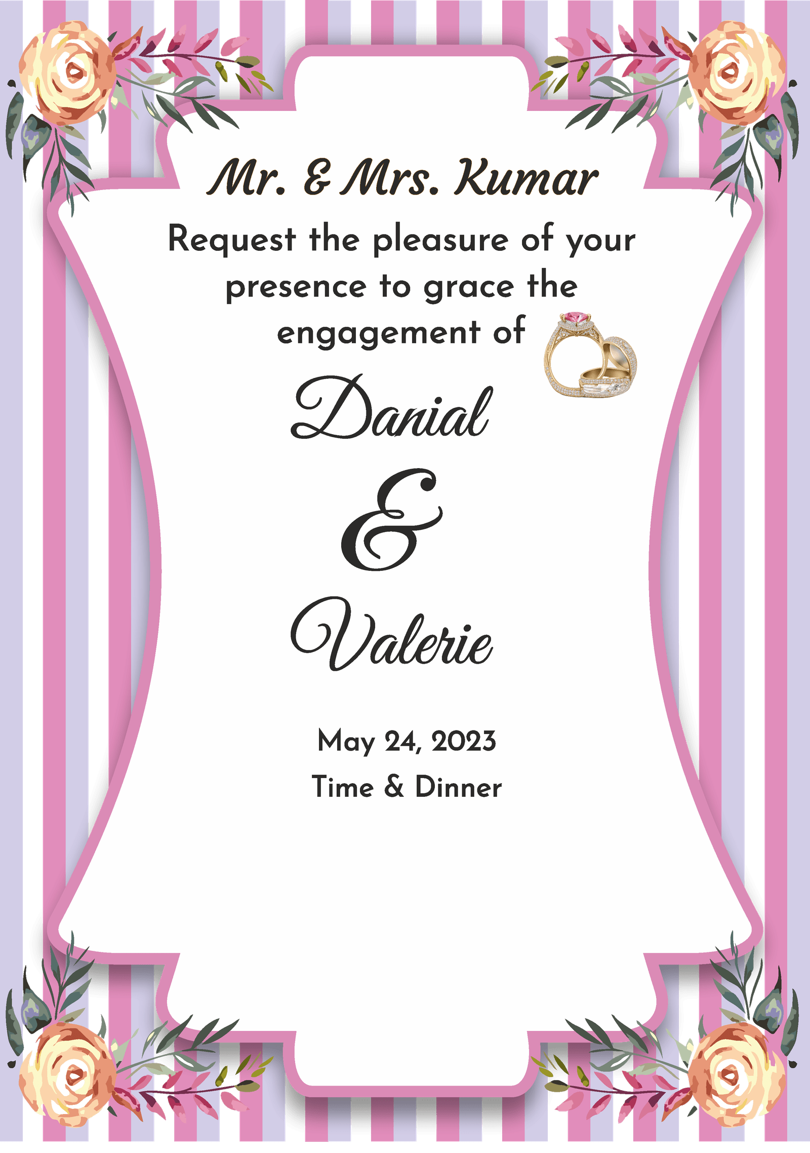 Create Beautiful engagement Invitation card with this engagement card design, rich color gives this ecard stunning look, edit this ecard with our easy to edit card maker tool, Create with online card creator, download and send online. Best online editable engagement card design, edit online with our easy to use product customizer app, instantly download and send to your guest.