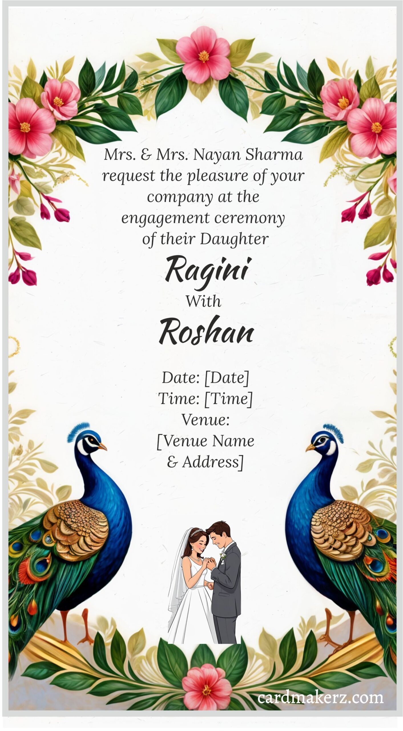 Choose this engagement invitation for WhatsApp template to create a unique announcement for your special day. At Cardmakerz.com, you can edit every detail of your engagement ceremony, ensuring your invitation reflects your style and preferences.