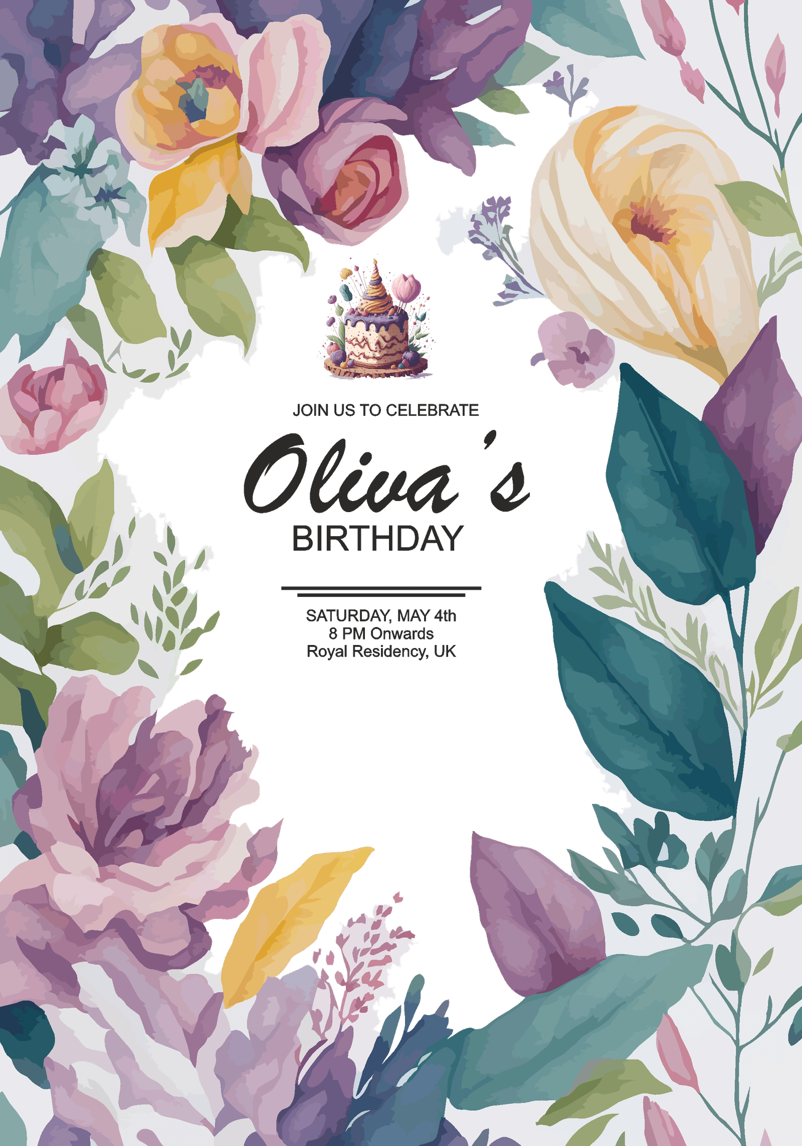 Share the Blooming Joy: Spread the excitement with friends and family by sharing the Floral Birthday Invitation Card digitally through email or social media. Connect with loved ones, no matter the distance, and invite them to join in the blooming celebration of your special day.