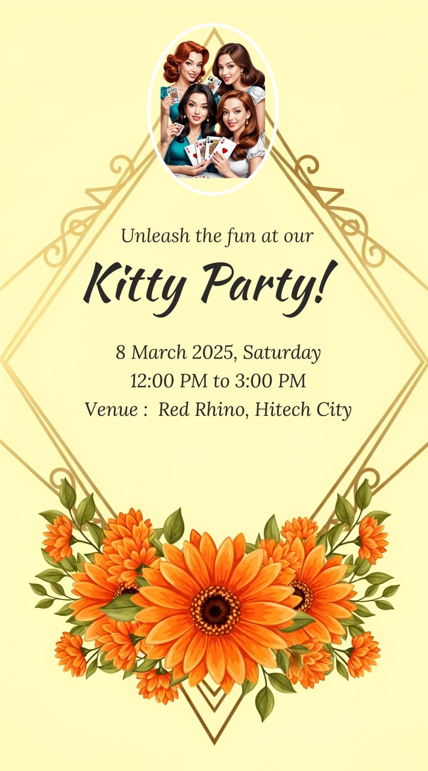 Embrace the easy and quick customization process, and get ready to celebrate! Download your personalized creation in seconds, and set the stage for a wonderful kitty party filled with memorable moments and delightful connections.