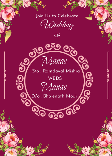 Create online digital wedding card with our online card customizer tool, Choose this design to make your special moment more memorable. beautifully crafted Wedding e invite is best choice for Dark color lovers. Fully editable on cardmakerz’s online editing software, you can easily create your wedding cards.