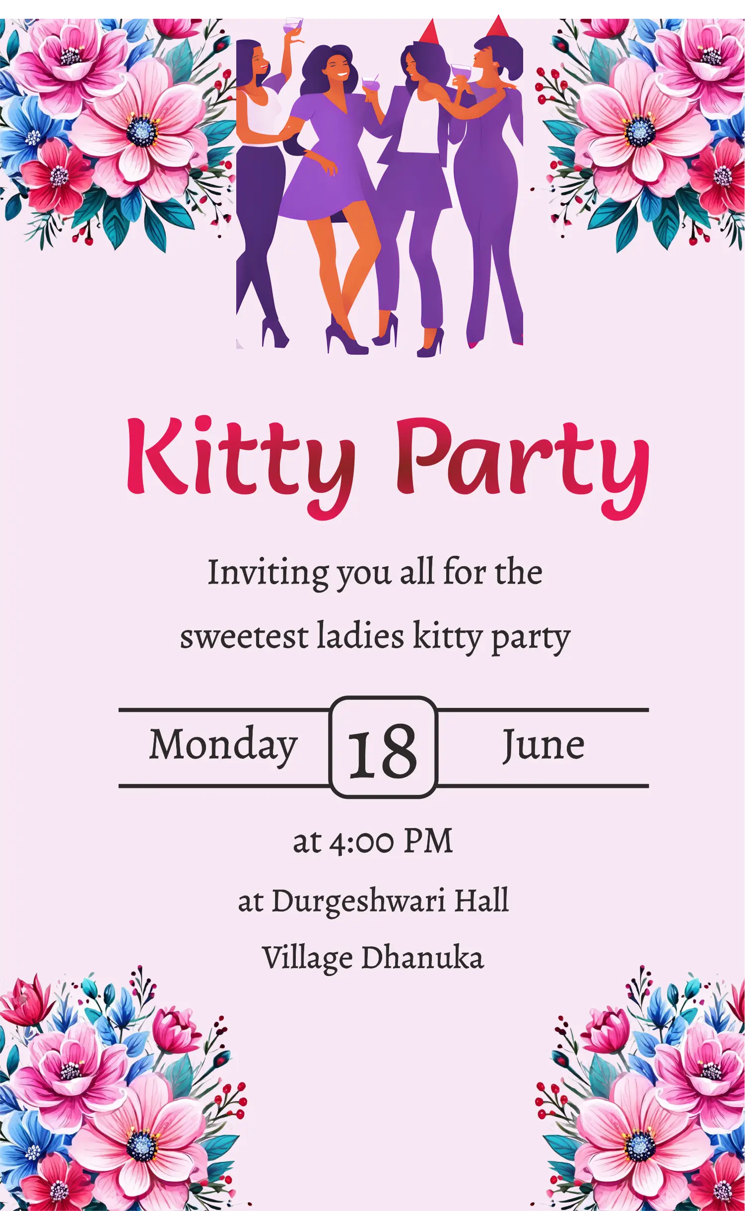 An inviting and well-designed invitation card is the first step to making your kitty party unforgettable. Our garden-themed kitty party invitation card combines elegance and functionality, allowing you to create a memorable first impression. Explore our card maker application today and start crafting invitations that will leave your guests eagerly anticipating your event.