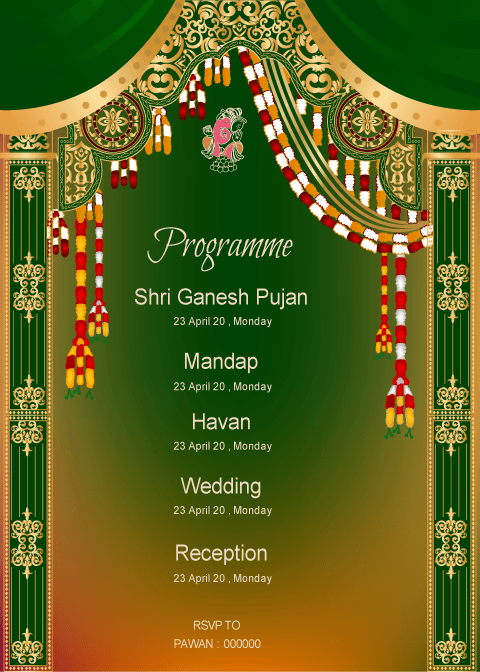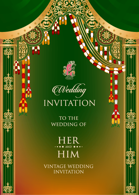 A lovely hanging garland comprised of flowers and green leaves can be seen on the card’s front. The garland is exquisitely constructed in a cascading pattern, and it is guaranteed to give your wedding decor a touch of elegance. The garland looks stunning against the deep green background of the card.