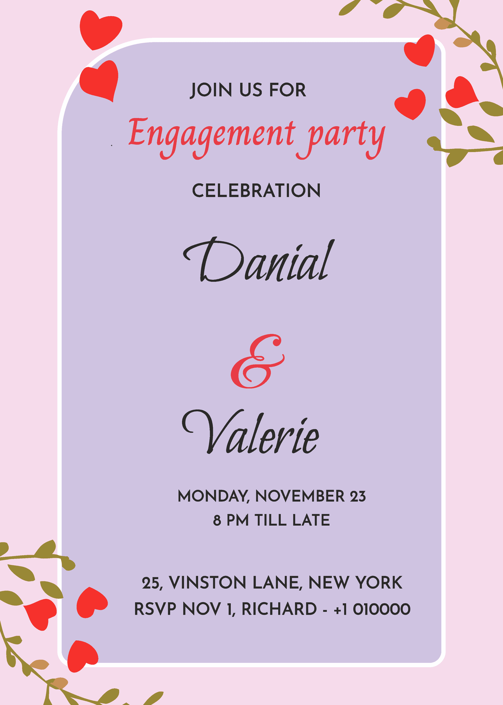 Beautiful heart shape red Engagement card template, Create your ecard with this design, rich color gives this product stunning look, edit with our easy to edit card maker tool, make online download and send online