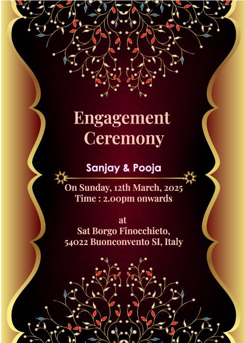 Celebrate the union of two hearts with our beautifully crafted Hindu engagement invitation card with name editing free, designed to encapsulate the essence of your love story. Meticulously created for those who seek elegance and convenience, our online editable, downloadable, and shareable invitation card is the epitome of modern romance.