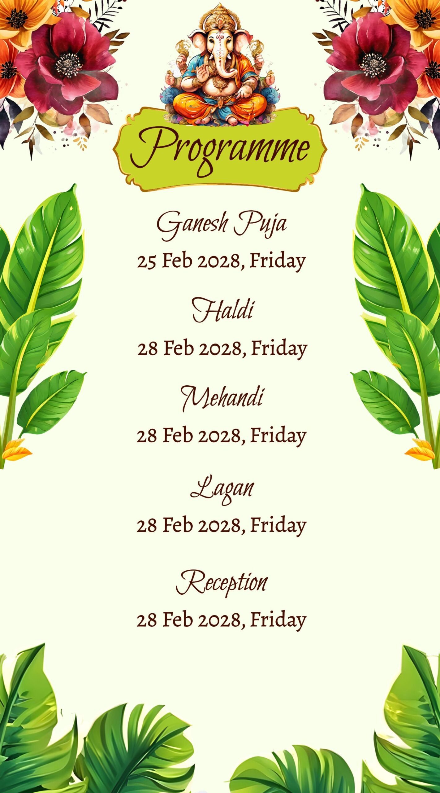 Welcome to CardMakerz.com, your ultimate destination for crafting the perfect online editable Indian wedding invitation PDF for WhatsApp. Our latest template, Auspicious Leaves, combines tradition with modernity, offering a seamless way to design and share your wedding invitations.