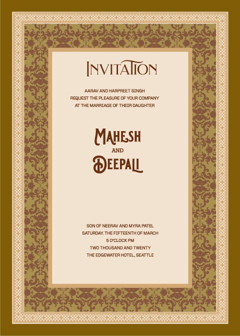 Create you own invitation using this template and invitation card creator website cardmakerz.com, Edit name, date, venue and other detail and share online engagement card in PDF file or Whatsapp card.