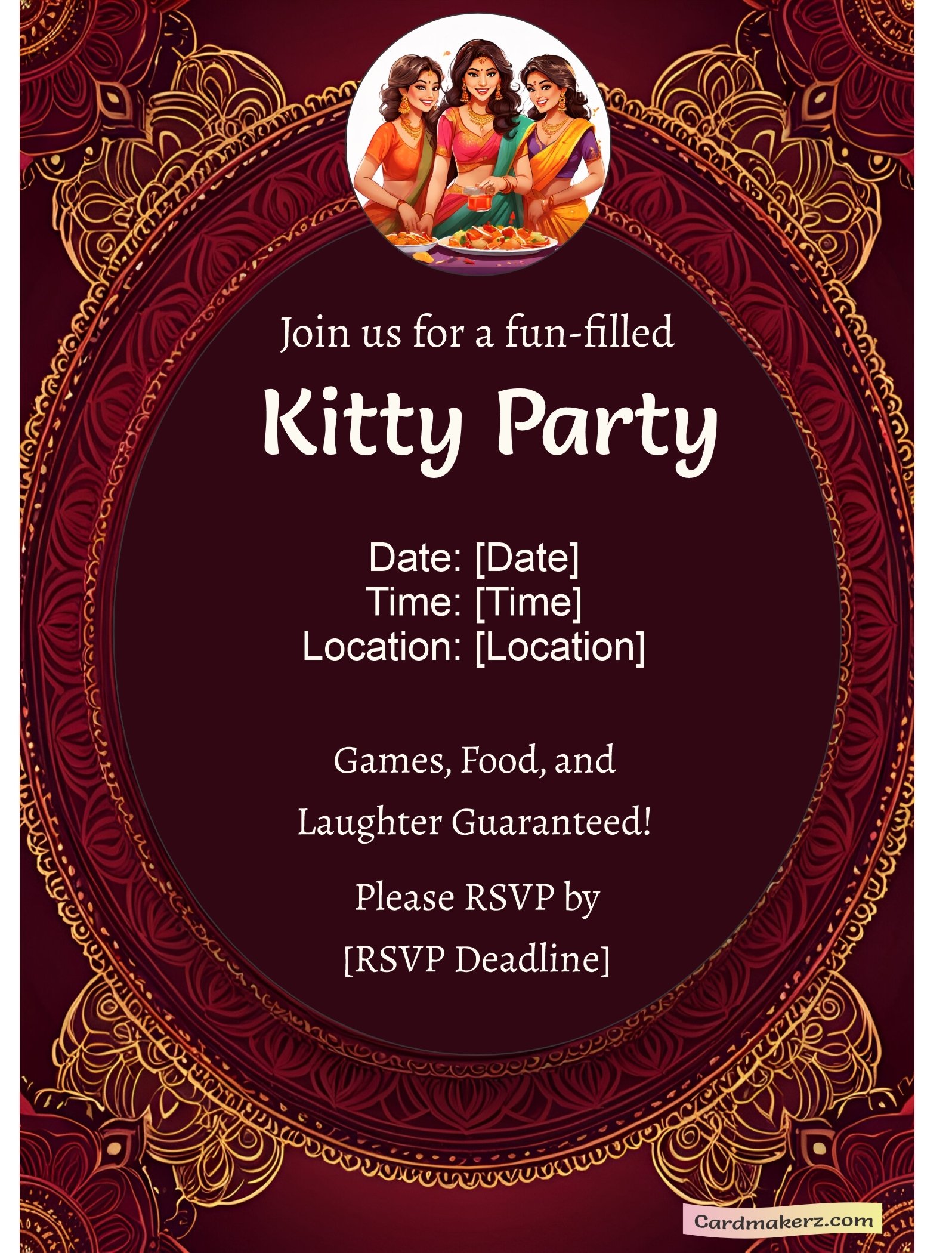 Planning a kitty party? Simplify your invitation process with our full editable WhatsApp kitty party template. With this template, you can edit essential details like name, date, and venue in just moments.
