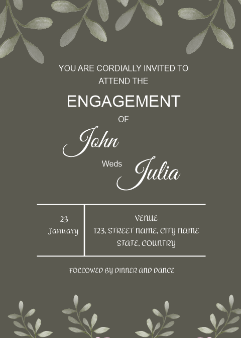 Create your engagement invitation online using this leave pattern Engagement E invite