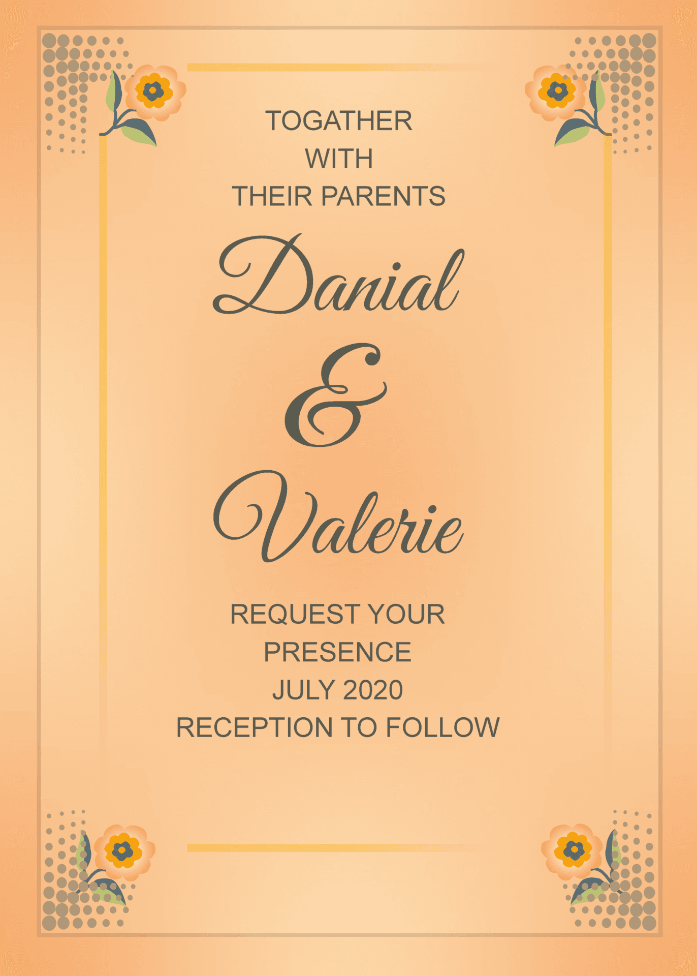 The orange and white floral editable invitation card can be used for a variety of events, including birthday parties and baby showers in addition to weddings and engagement parties. Your guests are likely to be impressed by its timeless and classic style.