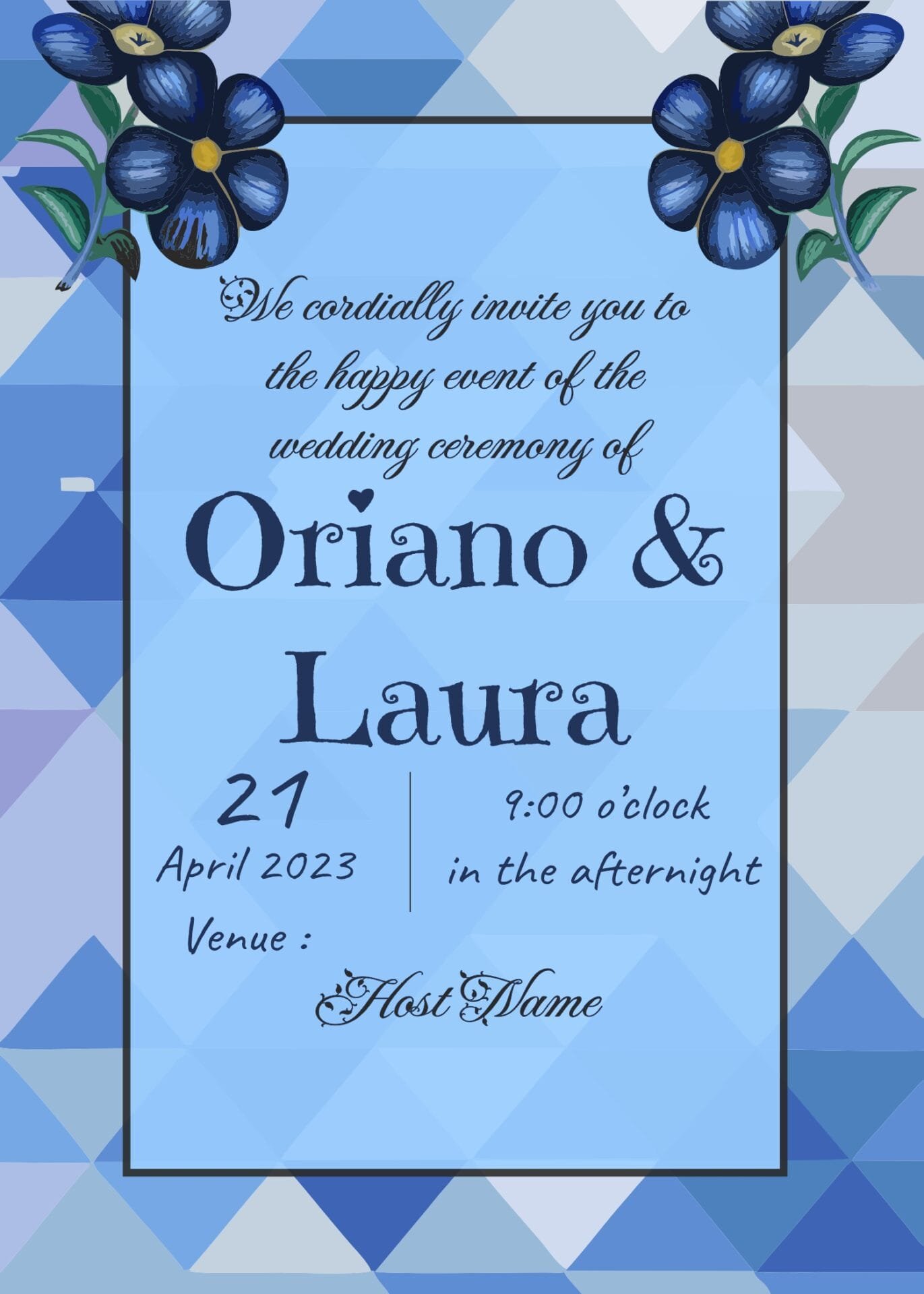 Blue Modern Wedding Invitation Card for any occasion, Choose, edit with our simple-to-use card maker app, download and print