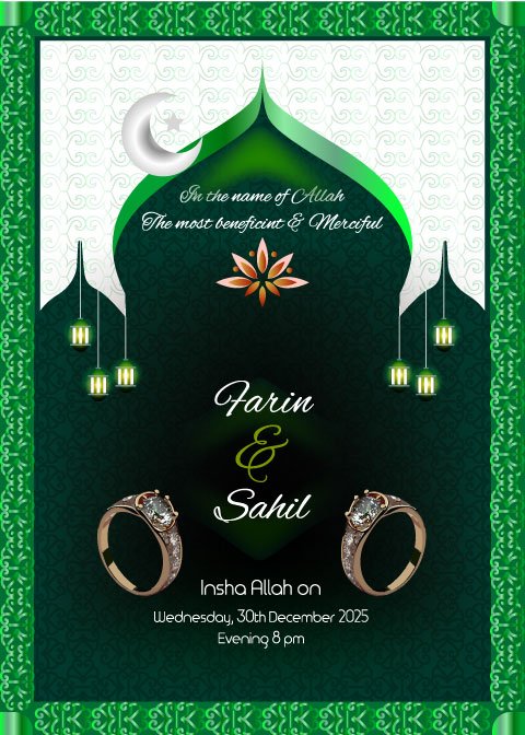 Welcome to Muslim wedding card maker website cardmakerz.com’s New card design.