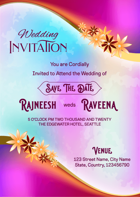 Beautiful floral decoration over rainbow color background, Example of best graphic design art latest wedding e invitation card.