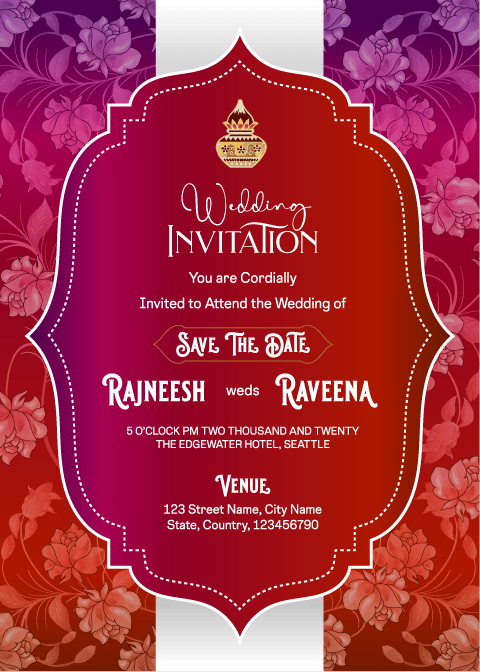 Edit online with our easy to use card maker designer software, create pdf wedding invitation card or whatsapp invitation card and share online with your guests.